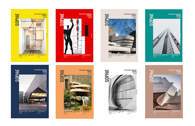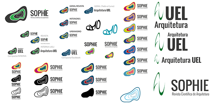 The architecture department's brand is formed by geometric concepts and a representation of the official UEL brand, it is also present in the brand of the scientific magazine Sophie in a direct way, thus making a connection mark.